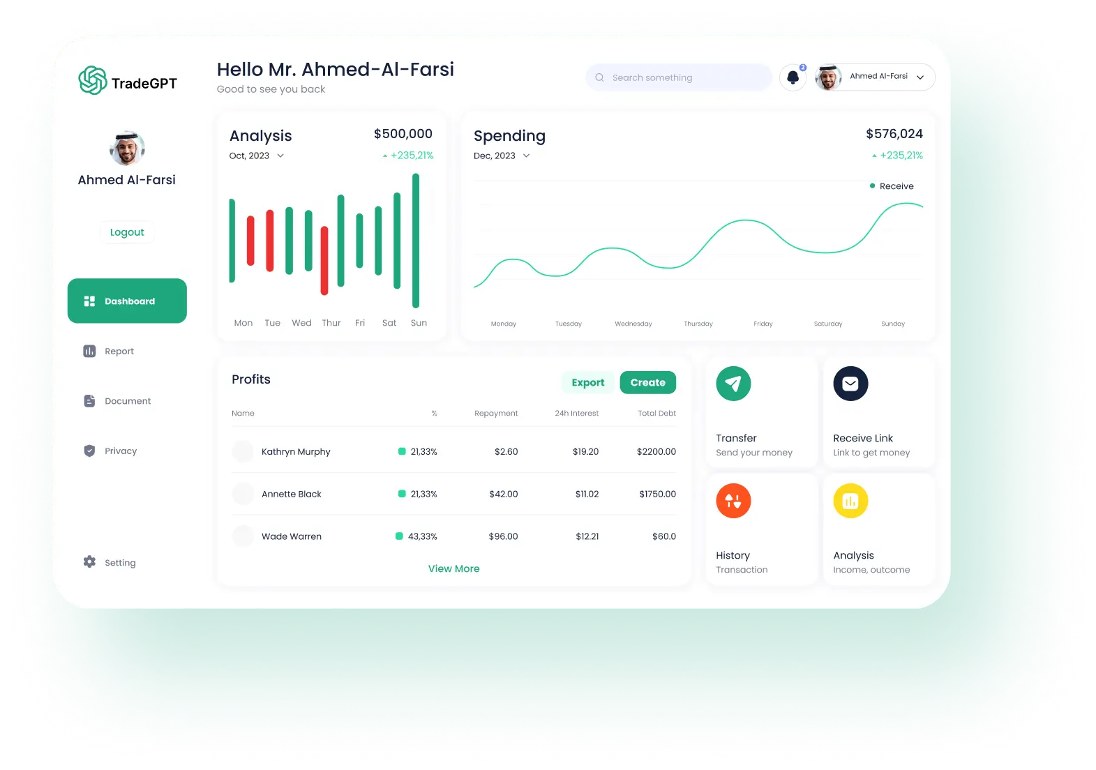 اكتشفت أن تجربتي في عالم التداول أصبحت أكثر راحة ونجاحًا بفضل TradeGPT. استفدت من السهولة في اتخاذ القرارات ومشاهدة نتائج إيجابية تتكرر. إنها أداة لا غنى عنها لكل من يسعى إلى تعزيز محفظته الاستثمارية.